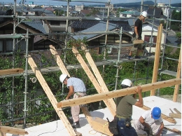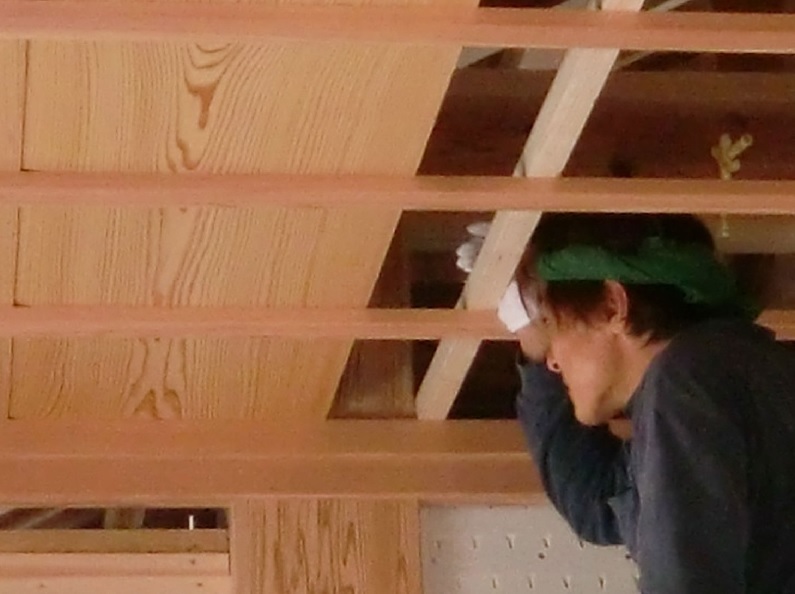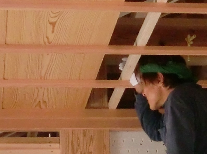 ここから構造用合板・住宅防水の要である透湿防水シートを貼ってから内部の作業に入ります。